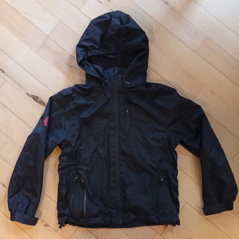 Regnjakke, Kilmanock, str.10 (140-146), elastik i livet, aftagelig hætte