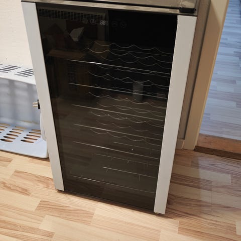Det er ca 2 år gl og fungerer helt som det skal. Har stået placeret i vores skur og har til dato været leveringsdygtig i kølige vin og pagne. Der er plads til 14 flasker alt efter str på flaskerne.