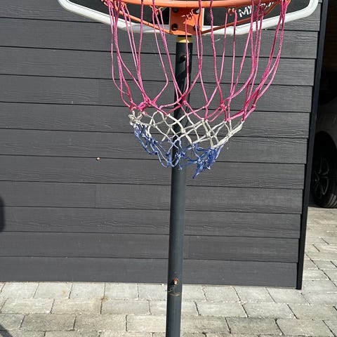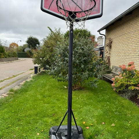Street Hoops Junior Basketballkurv med stativ, justerbar højde, farverne blå, orange og sort. Kurven er designet til indendørs brug og har et grafisk motiv på bagpladen. Materialet inkluderer plastik og metal. Velegnet til børn og unge til træning og leg.160/210cm og fyldt med 35liter kattegrus så vipper ikke