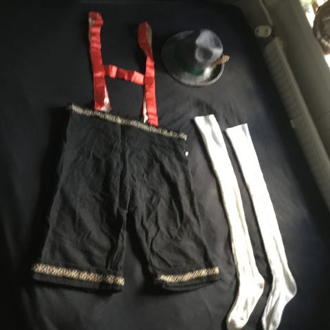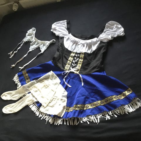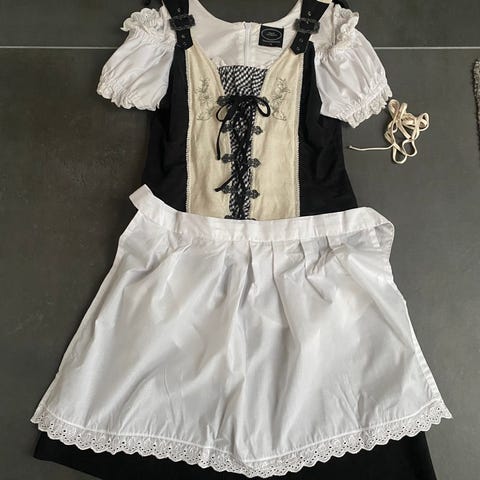 Flot Tyroler oktoberfest kjole, med blondeunderdel til str L-XL. Jeg sælger også parykker, og fletninger, hvis det er.