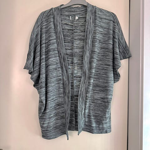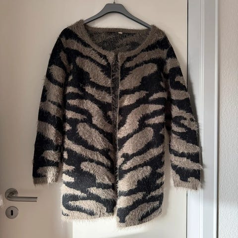 Grå strikcardigan med knapper. Str M. Matr 70% viscose og 30% nylon