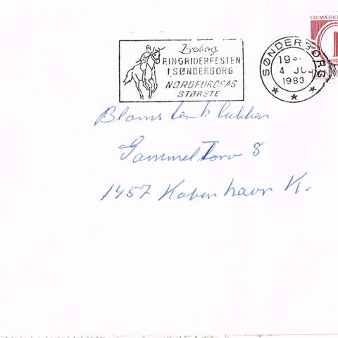 Postkort med flot tekstmaskinstempel "Besøg ringriderfesten i Sønderborg. Nordeuropas største". Datostempel 30. juni 1976.