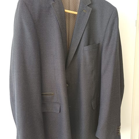Scroll ud på de fotos, hvor jakken er vist for og bag, for at se stoffets rigtige (mere “rolige”) udseende.