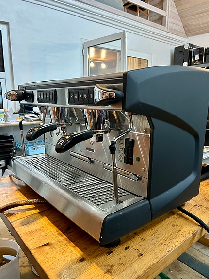 Maskinen er lige blevet totalrenoveret og står klar til mange års perfekt kaffeoplevelser.