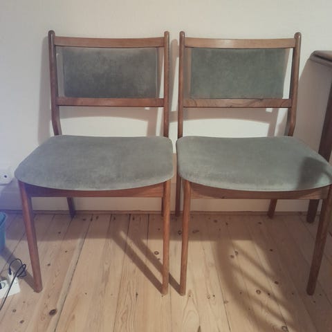 OBS: Plet på den ene stol, sæde, er ikke forsøgt fjernet.
