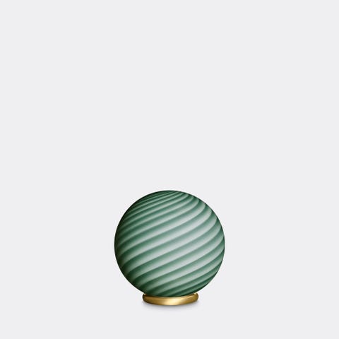 Ny Murano Candy bordlampe med petrolium grøn swirl. Mundblæst glas i rund form. E27 fatning samt base med overflade i børstet messing. Den perfekte størrelse til dit natbord, indbygget reol eller vindueskarm. Håndlavet i Italien. D:30 cm Vægt ca. 3 kg. Se alle Murano Candy lamper her