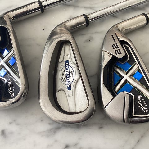 Grafit golfjern, Callaway, 3 stk Callaway hybrid jern 7’er, Sand, samt Chipper…