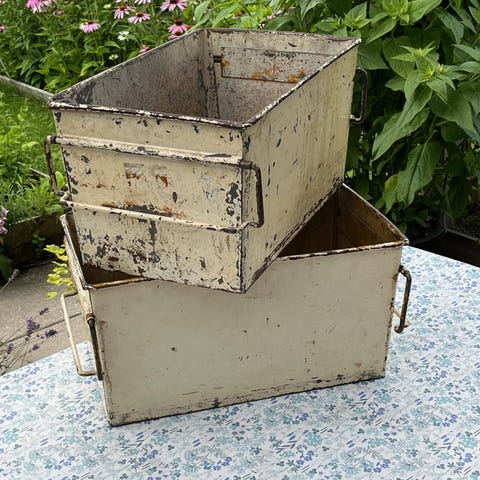 Jeg sælger mine smukke metalkasser, da jeg desværre ikke har plads til dem mere. Jeg har brugt dem til opbevaring indendørs, men det er kun fantasien, der sætter grænser 😊