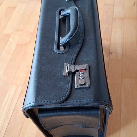 Superfed, flot og praktisk. Mappen til den bærbare computer eller de vigtigste papirer. Mange gode rum. Kan bæres i hånd eller over skulderen- crossover. Kraftige lynlåse der alle er intakte.