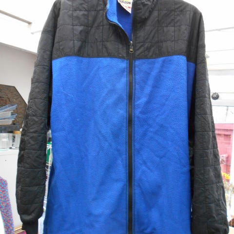 Blå og navy. Brugt max 5 gange. Let og behagelig at have på, men stadig lun og tæt. Kan bruges som overtøj sommer/efterår og mellelag om vinteren.