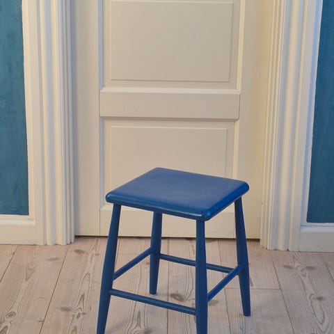 Fin lille træskammel med klassisk, enkel form og let buet sæde.