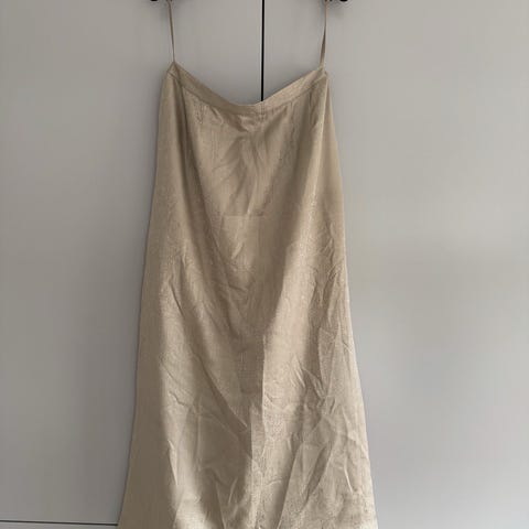 Gerard Darel nederdel i sort farve, størrelse 46 med et taljemål på cirka 94 cm, en længde på cirka 62 cm, lynlås på cirka 18 cm og slids på cirka 15 cm. Nederdelen har bælte og lommer, der dog blot er til pynt, der ikke nogen reel lomme, og er designet til kvinder. Nederdelen har en struktureret overflade og en klassisk pasform og er fremstillet af 58% uld, 39 % bomuld og 3 % polyamid. Linningen og stykket omkring lomme åbningen er fremstillet af 77% uld 19% polyamid og 4% viskose, medens foret er 100% acetat.
