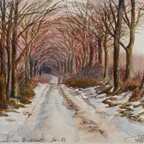 Akvarel af Løvtunnel ved Bredholt 29-01-1982 malet af Hans Mandøe