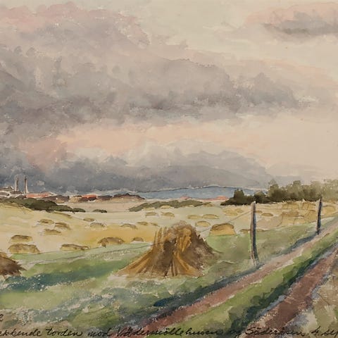 Akvarel af Birk, bøg, bølget Bunke, Store Dyrehave