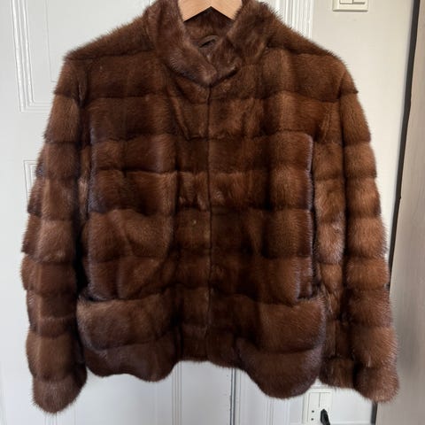 Super flot vedligeholdt mink pels/skind jakke med hætte fra Giacomo Caiezza