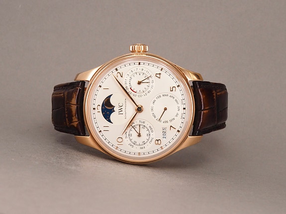 Uret har en sort skive med romertal og sidder på en original sort læderrem med originalt spænde i hvidguld – et mere afdæmpet og raffineret alternativ til en fuld guld-lænke.