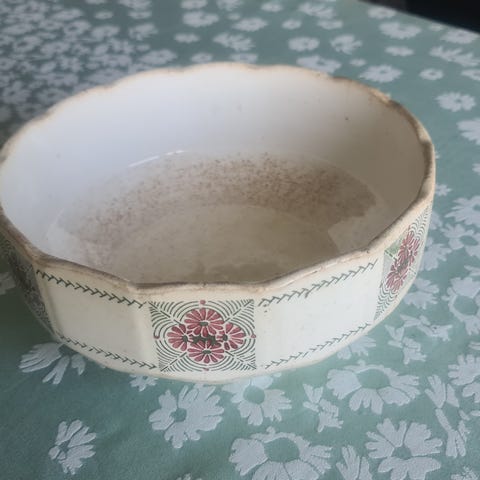 Vintage porcelænsskål med håndmalede blomster og fugle