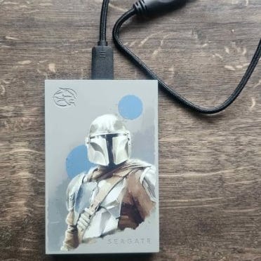 Ekstern harddisk (4TB) til PS4 og PS5, som kan tilsluttes til konsollen via det medfølgende USB-kabel.