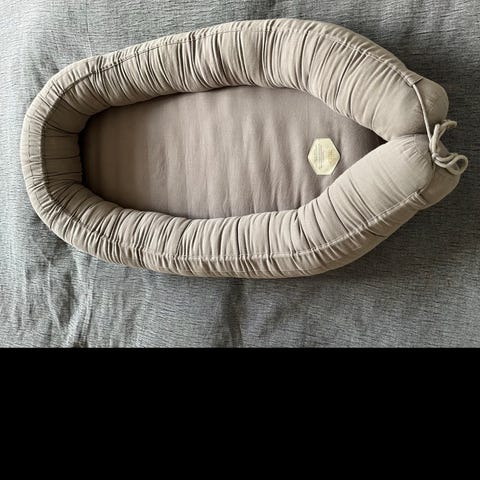Babynest i rigtig god stand. Den er altid brugt med stofble under. Babynesten kan justeres i størrelsen ved at stramme snorene (se billederne), eller kan laves om til en u-formet pølle. Dejlig blød i stoffet og med en god høj kant, som giver tryghed til bebs og samtidig sikrer, at baby ikke triller ud.