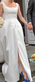 Den smukkeste, klassiske brudekjole. Den er nyrenset for at være helt klar til salg. Kjolen er købt hos Panayotis fra mærket Enzoani. Modellen hedder “Arlette”. Størrelsen er en 36 med skræddertilretninger.