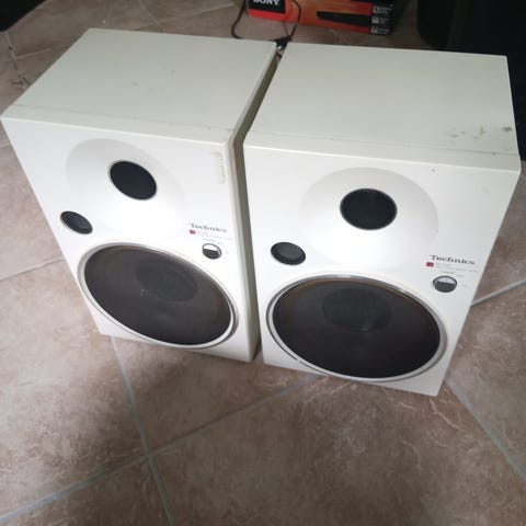 Sælger disse små Technics højttalere. De spiller ret godt. Funger fint som alternativ til de fleste små bluetooth højttalere. Og så er der jo tale om stereo...