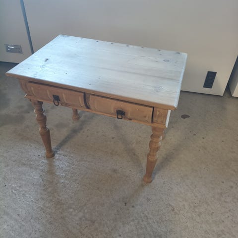 Hvidt bord med skuffe og hylde