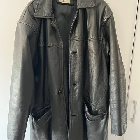 Læderfrakke i sort, kraftig med for, str L
