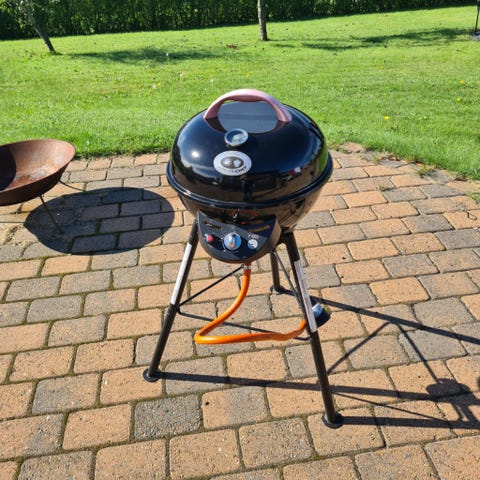 Cobb grill med lidt tilbehør og en nyere taske og lidt kul.