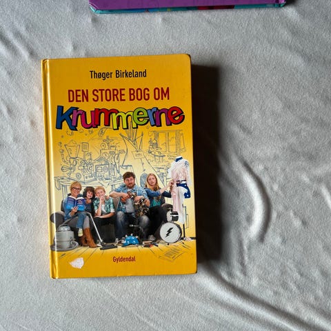 Den store bog om Krummerne er en bog med gul forside, der indeholder historier og illustrationer relateret til Krummerne-serien. Bogen er i fysisk format og egnet til læsning og samling.