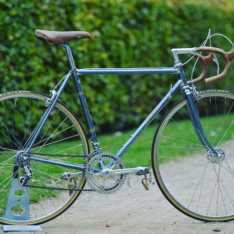 fremstår med original lakering. Håndbygget af Reynolds 531 dobbelt koniske mangan Molybdæn stålrør og Nervex Professional 49/162 muffer. Campagnolo gaffelender for/bag, Stronglight kronrørslejer og kranksæt med udboret aksel for vægtbesparelse