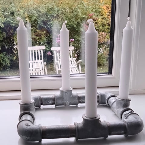 Lavet af fittings. Jeg har også en adventsstage til salg, se anden annonce.