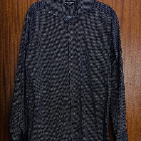 Hvid skjorte fra Bruun og stengade med motiver. Størrelse 38 i slim fit. Brugt få gange og stadig pæn