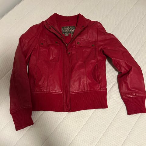 BERNSDO Sort Læderjakke i størrelse M til kvinder. Jakken er fremstillet i sort læder og kategoriseret som andet udendørstøj. Den har lynlåslukning foran og lommer med lynlås.