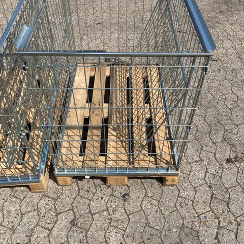 Pallecontainer i flot stand med foldbare sider.