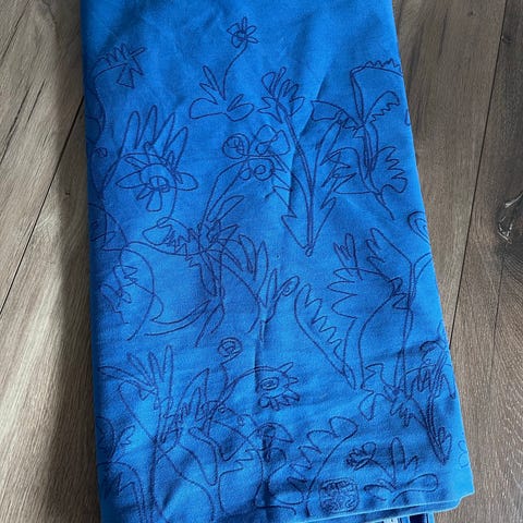 Virkelig flot blå damask dug fra Georg Jensen med det smukkeste “Athen” mønster - oprindeligt tegnet af Vibeke Klint i 1993