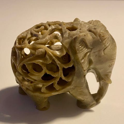 Sød rød elefant med fine detaljer, skåret i fedtsten, fra Kenya.