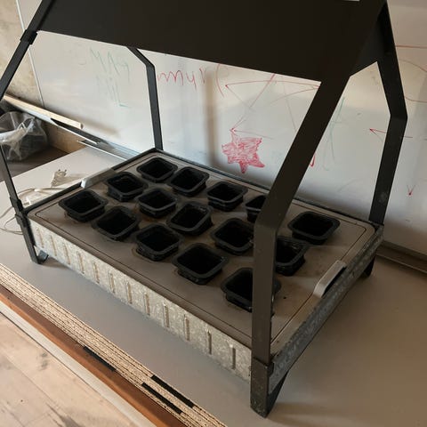 Har du lyst til selv at stå for næste års planter og blomster til drivhus og have? Så er du kommet godt fra start med dette frødyrkningssæt Växer fra Ikea. Her kan du dyrke planter i 3 etager med op til 15 planter på hver etage. Alle planterne er sikret godt lys med plantelys / grolys på hver etage. Det er oprindeligt tænkt til hydroponisk dyrkning, men fungerer glimrende til almindelig dyrkning i jord. De små almindelige firkantede potter passer i hullerne. Bruger du ikke alle hullerne, kan du lægge låg på, så der ikke kommer lys ned. Der er plastikbakker på hver etage, der beskytter metalbakkerne. Alt tilbehør følger med. Fremstår i meget fin stand, trænger dog til at blive vasket af.