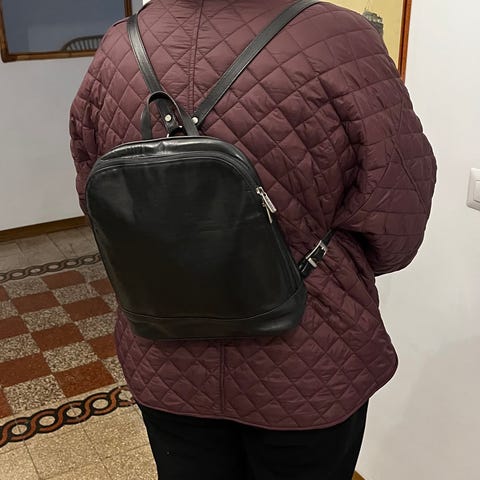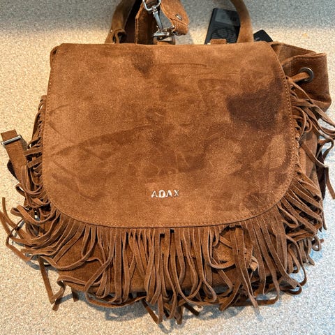 Andet, Adax, Velholdt lækker,praktisk rygsæk fra ADAX i lækkert sort kalveskind. Indvendig er rygsækken opdelt i to rum, adskilt af en lynlåslomme, den indeholder ud over det en mindre lynlåslomme samt lomme til mobiltelefonen. Bagpå rygsækken finder du en mindre lynlåslomme. Skulderremmene kan justeres i længden så den sider godt på ryggen.