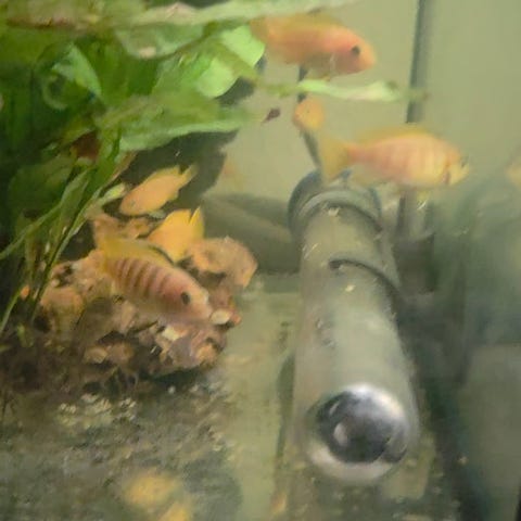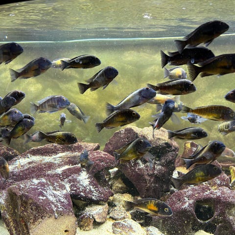 Yngel af pseudotropheus elongatus mpanga, flere størrelser fra 1-5cm store