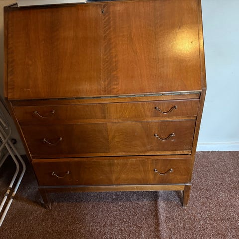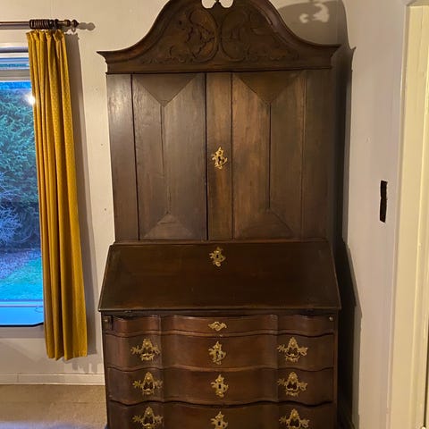 Sekretær med skuffer og skrivepult.
