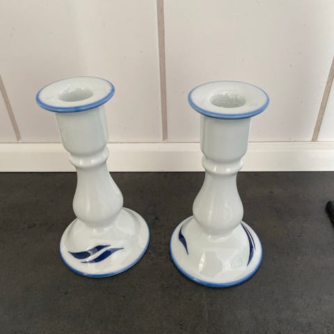 2 stk. høje lysestager : højde 15,5 cm, diameter (bund) 7,5 cm, vægt 208 gram pr. stk. : 65 kr. pr. stk.
