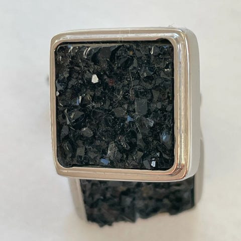 Stål og glas (vistnok). Der er gået et lille hjørne af den ene.