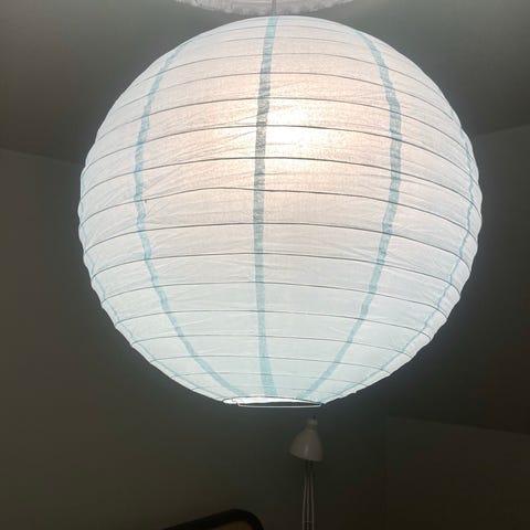 Fin lyseblå lampe.