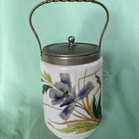 Kiksespand i hvidt glas med flot mønster