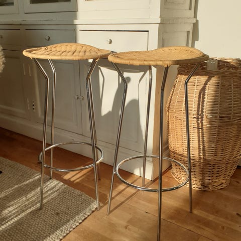 Pair of stained beech bar stools, model Marbella.