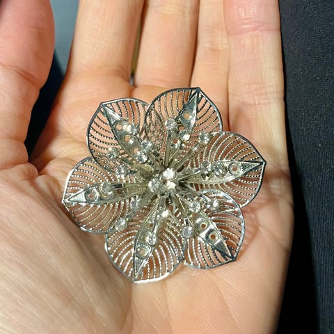 Tre brocher i kobber med emalje sælges samlet