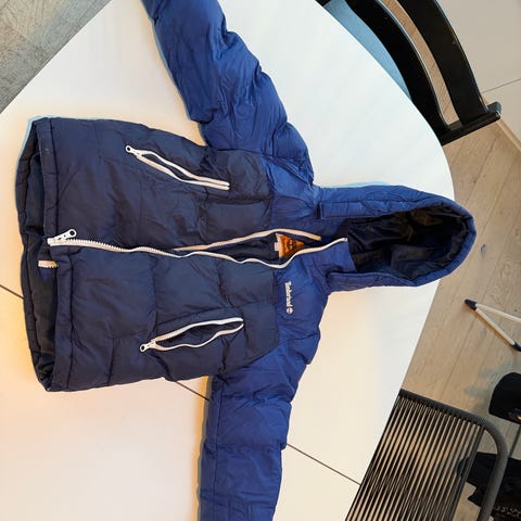 Jakke, Denimjakke, Timberland, str. 128, (Str. 8 år - stor i størrelsen)). Overgangsjakke i cowboystof med fleece/vatteret foer. Fin stand. Kan sendes med dao.