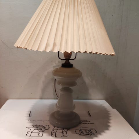 Bordolielampe med opalglas og messingdetaljer, meget flotte detaljer