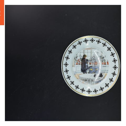 Det sødeste, velholdte forklæde med Carl Larsson motiv og røde bånd
