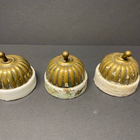Smuk antik messing og porcelæns kontakt afbryder.